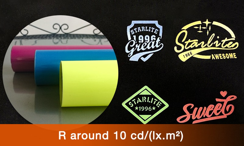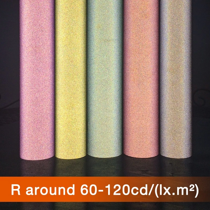 It uses tiny glass beads to reflect light back to its source. When illuminated with a directional light source, a colorful visual effect appears, which provides the wears with maximum safety at night.