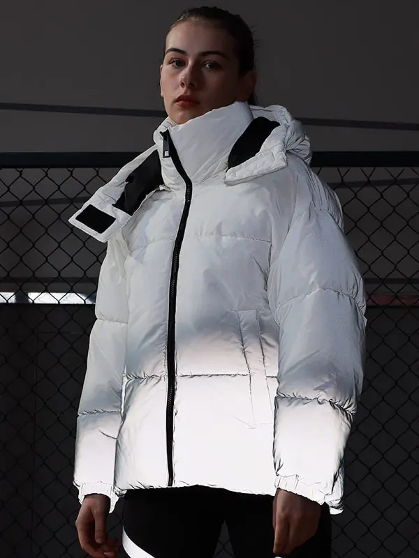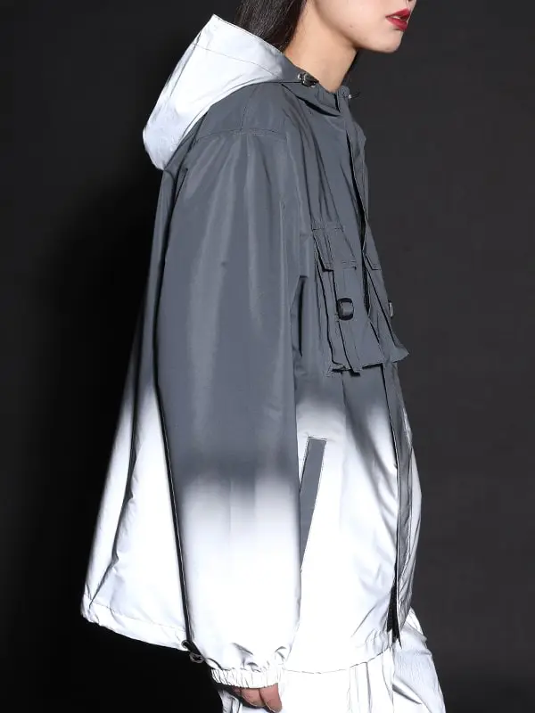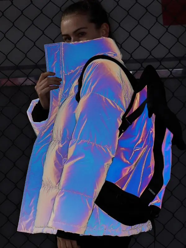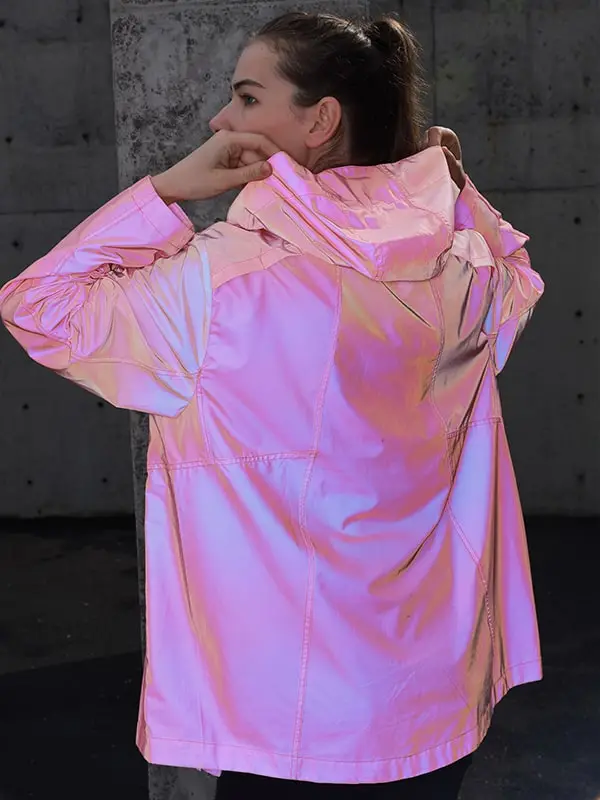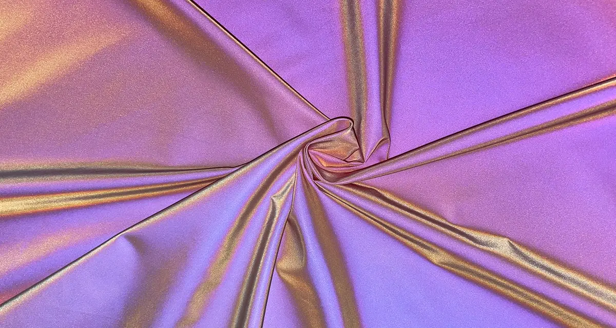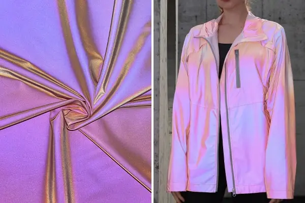 In daylight, the fabric appears as a normal gradient print, with the transparent rainbow coating blending seamlessly. At night, when light shines on it, the fabric reflects a stunning rainbow glow, enhancing its fashion-forward appeal and functionality.
