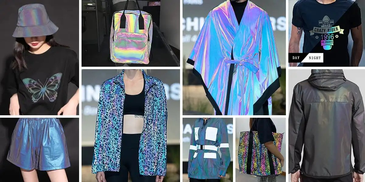 Rainbow reflective clothes or fabrics help the designers to combine fashion with safety. It appears in modest black at daylight, and when at night illuminated by light, it transforms into a striking multi-color rainbow pattern, which enables the wearers to be an eye-catcher at night.