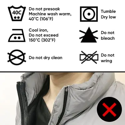 Reflective fabric is not suitable for parts with direct skin contact such as collar or lining. It will cause an uncomfortable feeling when contacting directly with skin.