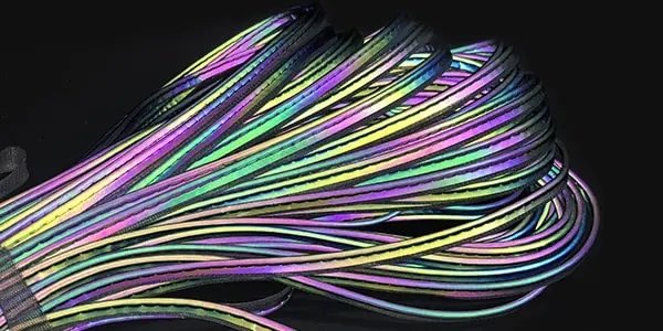 We can also make rainbow reflective piping to be used in clothing, backpacks, caps, shoes etc. to outline and enhance the wearers’ visibility at nighttime. The width of the cotton tread and reflective fabric can be customized as per requested.