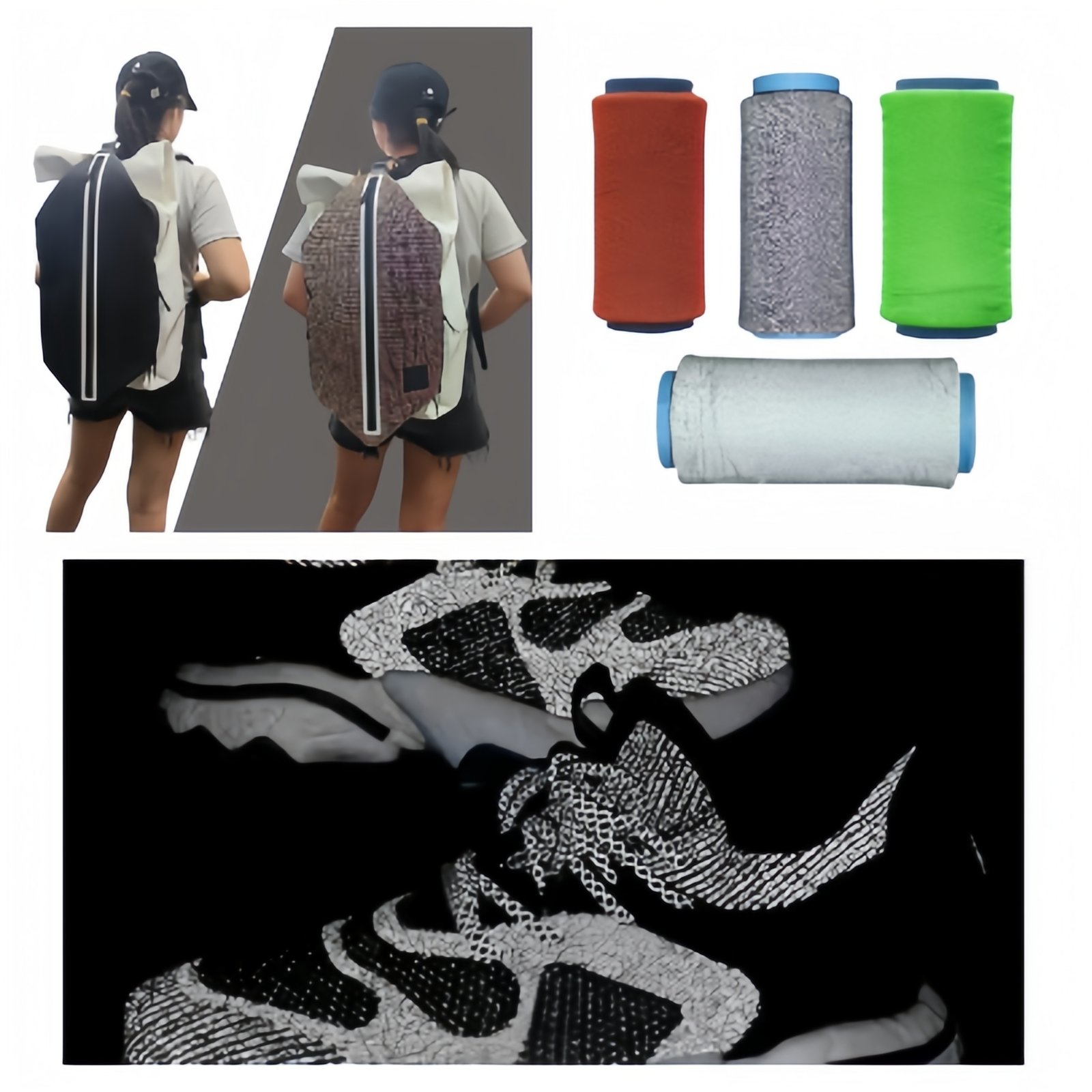 Reflective thread for embroidery: High visibility at night, ensuring safety and reliability. Under vehicle headlights or flashlights, the reflective effect is significant, greatly improving visibility and safety for workers, cyclists, and outdoor users.